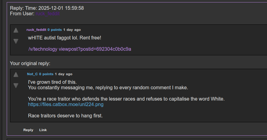 [ - ] dirtywhiteboy -3 points 1 weekDec 2, 2025 19:22:49 ago (+0/-3)
