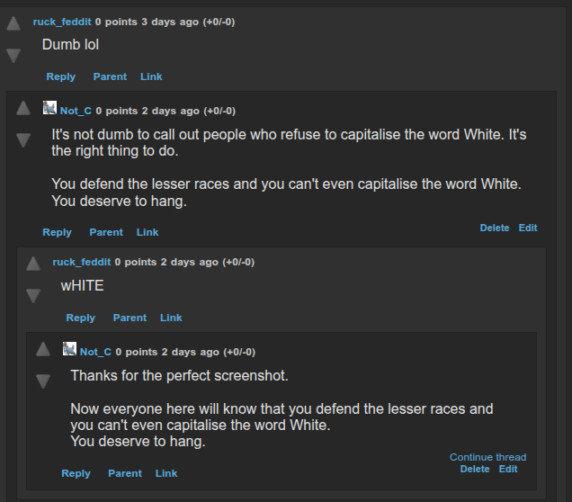 You're a race traitor who defends the lesser races and refuses to capitalise the word White.
