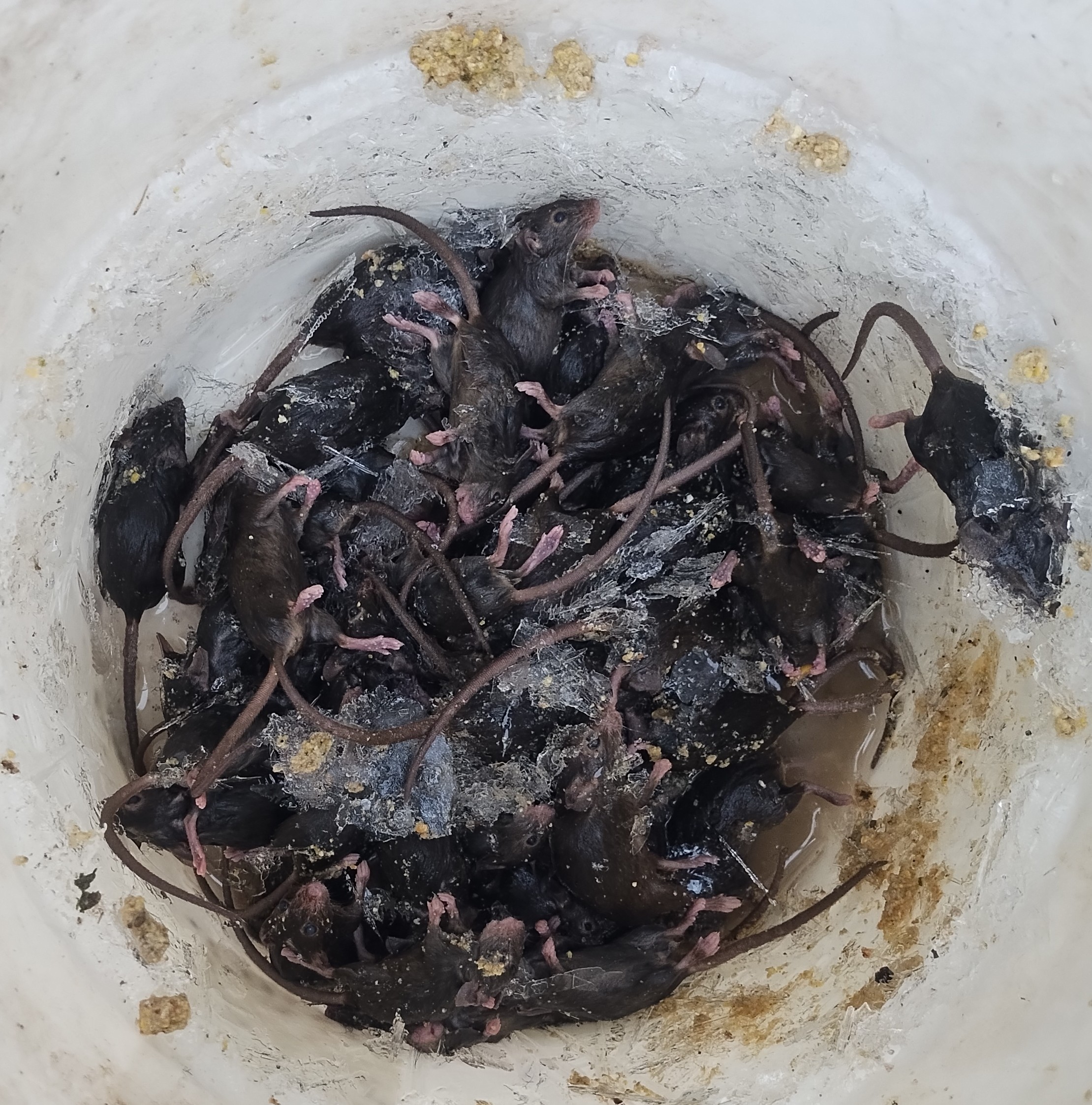 If I hid the food, they would come into the house. Drowning is not great but what other choices do I have? Capture but don't drown? Freeze them? I certainly considered hooking up an electric fence to a choke point but I think this is certainly the most effective. I tried this trap before but it didn't catch any. It has to be right under the food. I bet there is a mouse drowning in the barn as I type this. They made the choice, I just made my free food less available.